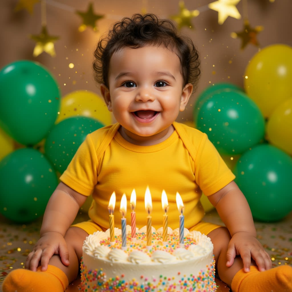 Luxury Baby Birthday Photoshoot with Number Prop — happy AI design template. Customize and generate on Aiartform.